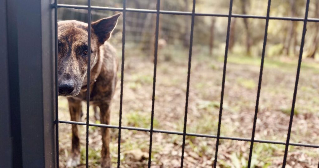 Two photos were shared; one which showed the dog behind bars at the animal shelter, hoping for a second chance.