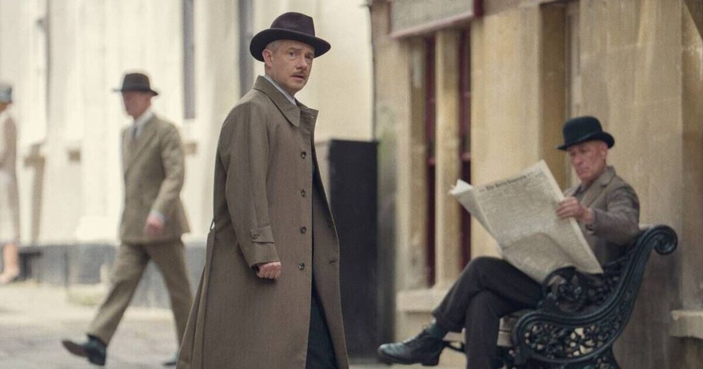 Martin Freeman, star of Sherlock and The Responder, who portrays Superintendent Battle in Agatha Christie’s Seven Dials, was seen filming in Bristol alongside vintage cars, according to BBC Countryfile.