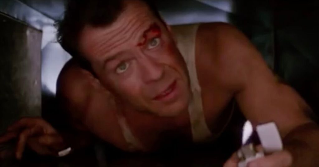 New York cop John McClane (Bruce Willis) finds himself in the hero role as he flies to LA to reconcile with his estranged wife, Holly (played by Bonnie Bedelia). Having greeted Holly in her place of work, at the Nakatomi Plaza Skyscraper, it’s not long before a group of gun-wielding criminals hold people captive.