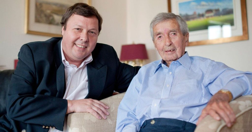 Author Felix Francis with his late father, novelist and champion jockey Dick Francis, in 2009 (Image: Alamy)