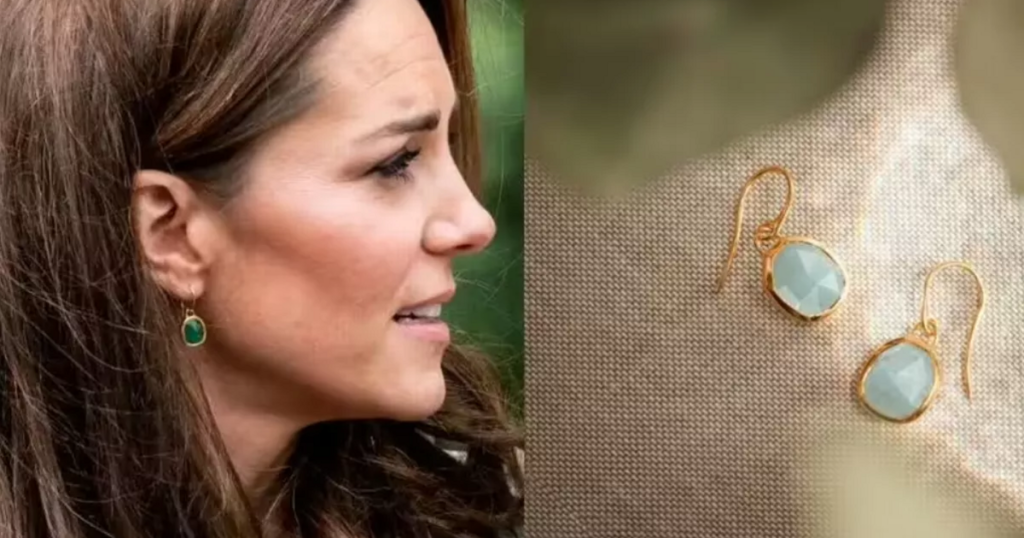 Kate wore the green onyx version with a warm gold-plated shine, but there are plenty of options to choose from. The collection includes silver and rose-gold tones as well as different stones like moonstone and black line onyx.