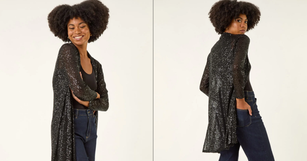 Roman shoppers are getting into the fesitive spirit early thanks to a sparkling cardigan that’s ideal for Christmas parties. Now redued in the sale, this statement knit is perfect for adding a touch of glamour to Christmas wardrobes whether it’s heading out for drinks or a work event.